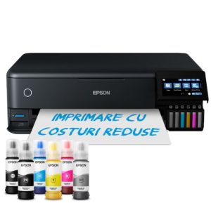A doua imprimantă pe care eu o dețin este Epson EcoTank L1210. O folosesc pentru printarea de poze și pot spune că o face foarte bine, mai ales că poate printa fără margini pe hârtie foto clasică de 10×15 cm. Modelul este unul care utilizează tehnologia CISS și este unul foarte economic, iar cerneala nu este deloc scumpă.